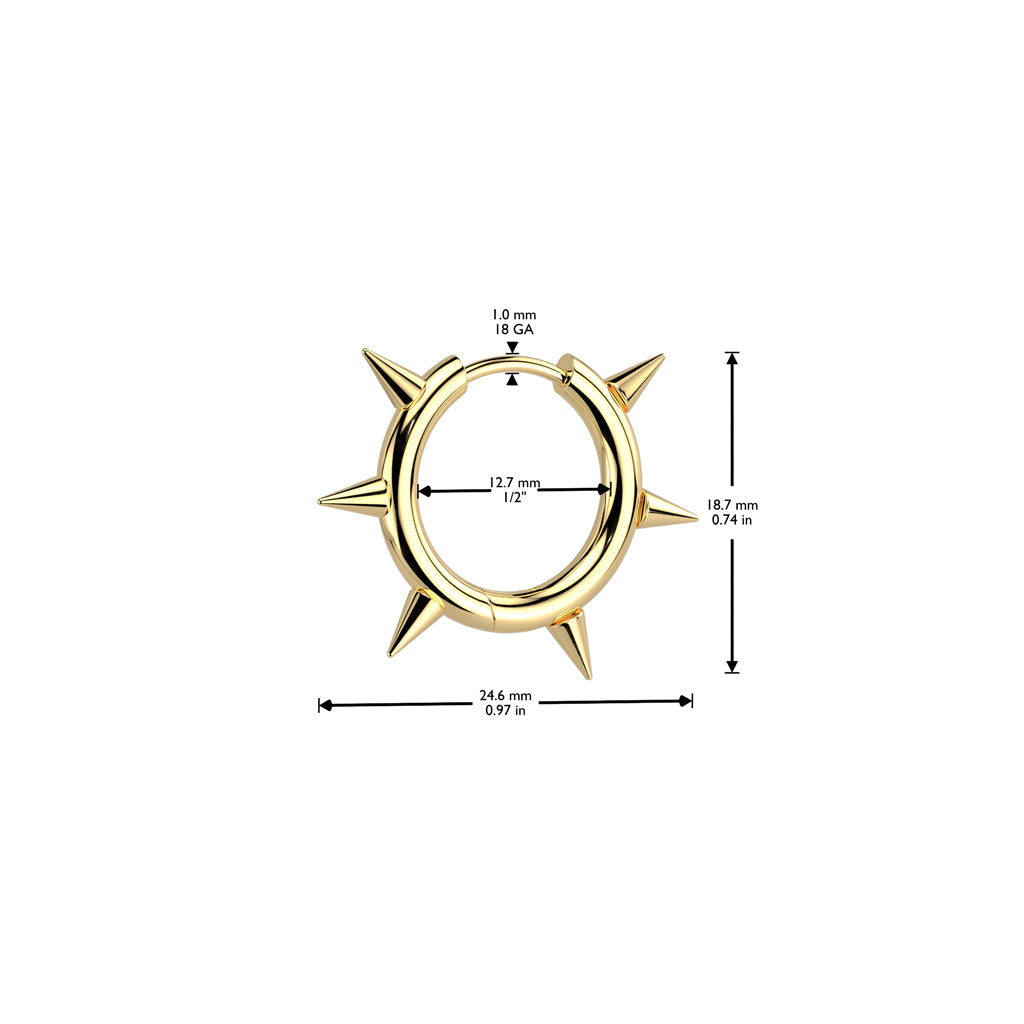 These 316L Surgical Steel Thin Spike Hinged Hoop Earrings have a decorative multi spike design and a convenient, easy to open hinged closure.