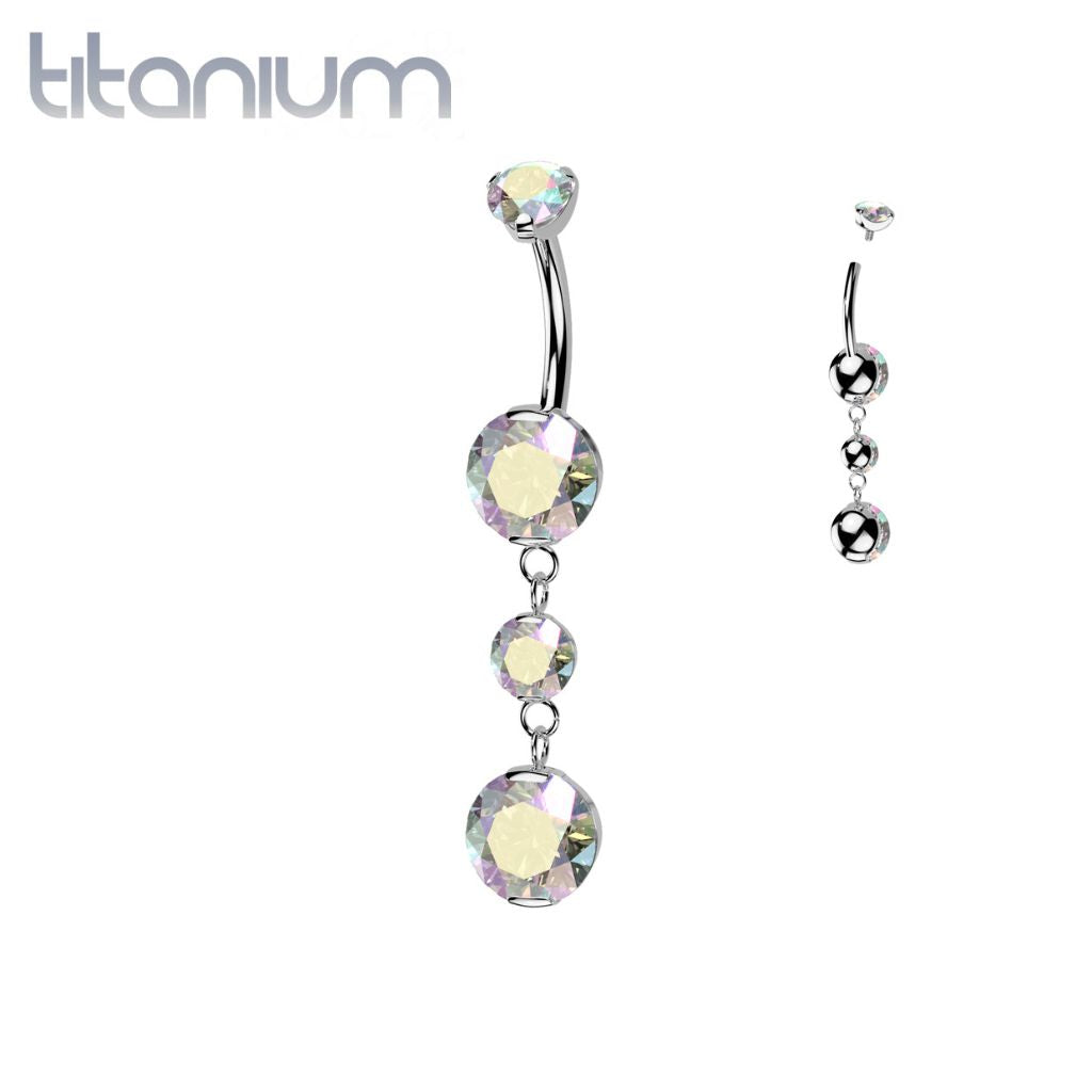 IMPLANT GRADE TITANIUM AURORA BOREALIS CZ INTERNALLY THREADED MULTI GEM DANGLE BELLY RING